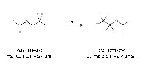 1.通过二氟甲基-2,2,2-三氟乙基醚合成1,1-二氯-2,2,2-三氟乙基二氟甲醚,收率约83%;