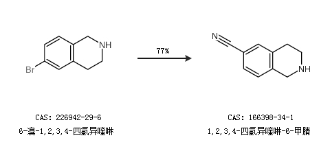 1.通过6-溴-1,2,3,4-四氢异喹啉合成1,2,3,4-四氢异喹啉-6-甲腈,收率约77%;