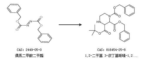 2.通过偶氮二甲酸二苄酯合成1,2-二苄基 3-叔丁基哌嗪-1,2,3-三羧酸