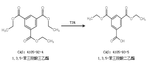 1.通过1,3,5-苯三羧酸三乙酯合成1,3,5-苯三羧酸二乙酯,收率约73%;