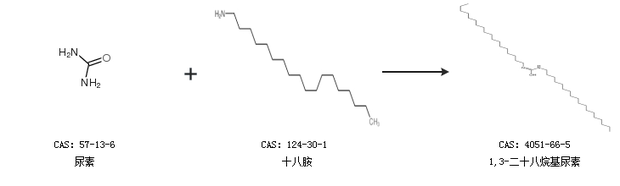 1.通过异氰酸十八酯合成1,3-二十八烷基尿素,收率约35%;