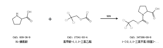1.通过DL-脯氨酸和氯甲酸-2,2,2-三氯乙酯合成1-[(2,2,2-三氯苄氯)羰基]-吡咯烷-2-羧酸,收率约99%;