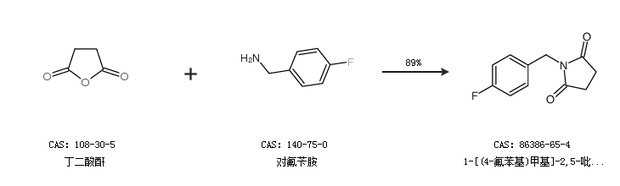1.通过丁二酰亚胺和4-氟溴苄合成1-[(4-氟苯基)甲基]-2,5-吡咯烷二酮,收率约88%;