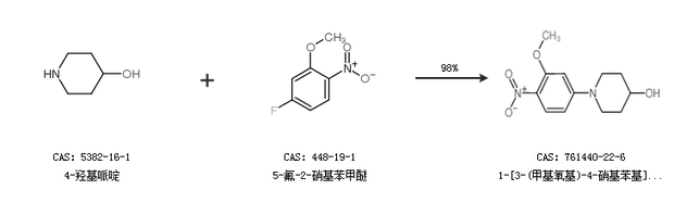 1.通过4-羟基哌啶和5-氟-2-硝基苯甲醚合成1-[3-(甲基氧基)-4-硝基苯基]-4-羟基哌啶,收率约98%;