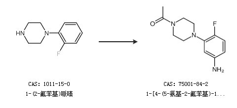 1.通过1-(2-氟苯基)哌嗪合成1-[4-(5-氨基-2-氟苯基)-1-哌嗪]乙酮