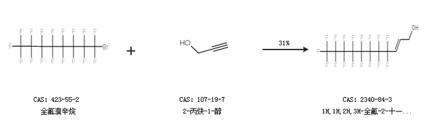 1.通过全氟辛基碘烷和2-丙炔-1-醇合成1H,1H,2H,3H-全氟-2-十一烯-1-醇,收率约56%;