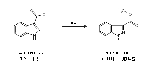 2.通过吲唑-3-羧酸合成1H-吲唑-3-羧酸甲酯,收率约86%;