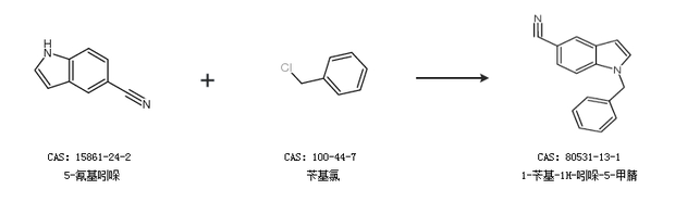 1.通过5-氰基吲哚和苄基氯合成1-苄基-1H-吲哚-5-甲腈