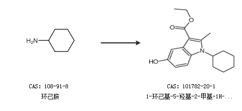 1.通过环己胺合成1-环己基-5-羟基-2-甲基-1H-吲哚-3-羧酸乙酯