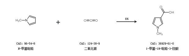 1.通过N-甲基吡咯和二氧化碳合成1-甲基-1H-吡咯-3-羧酸,收率约6%;