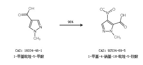 1.通过1-甲基吡唑-5-甲酸合成1-甲基-4-硝基-1H-吡唑-5-羧酸,收率约96%;