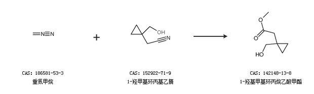 1.通过重氮甲烷和1-羟甲基环丙基乙腈合成1-羟基甲基环丙烷乙酸甲酯