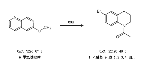 2.通过6-甲氧基喹啉合成1-乙酰基-6-溴-1,2,3,4-四氢-喹啉,收率约69%;