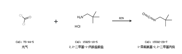 1.通过光气和2,2-二甲基-1-丙胺盐酸盐合成1-异氰酰基-2,2-二甲基丙烷,收率约82%;