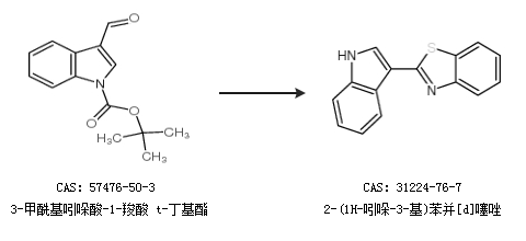2.通过3-甲酰基吲哚酸-1-羧酸 t-丁基酯合成2-(1H-吲哚-3-基)苯并[d]噻唑