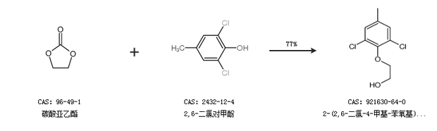 1.通过碳酸亚乙酯和2,6-二氯对甲酚合成2-(2,6-二氯-4-甲基-苯氧基)-乙醇,收率约77%;