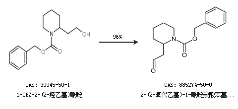 1.通过1-CBZ-2-(2-羟乙基)哌啶合成2-(2-氧代乙基)-1-哌啶羧酸苯基甲酯,收率约96%;