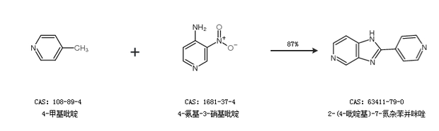 1.通过4-甲基吡啶和4-氨基-3-硝基吡啶合成2-(4-吡啶基)-7-氮杂苯并咪唑,收率约87%;