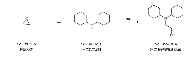 1.通过环氧乙烷和十二氢二苯胺合成2-(二环己基氨基)乙醇,收率约68%;