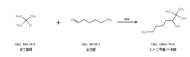 1.通过叔丁基锂和正己醛合成2,2-二甲基-3-辛醇,收率约90%;
