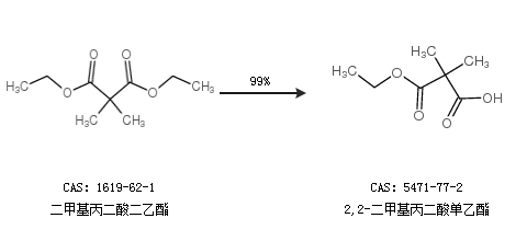 1.通过二甲基丙二酸二乙酯合成2,2-二甲基丙二酸单乙酯,收率约99%;