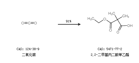 2.通过二氧化碳合成2,2-二甲基丙二酸单乙酯,收率约91%;