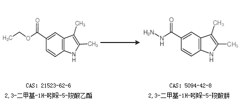 1.通过2,3-二甲基-1H-吲哚-5-羧酸乙酯合成2,3-二甲基-1H-吲哚-5-羧酸肼