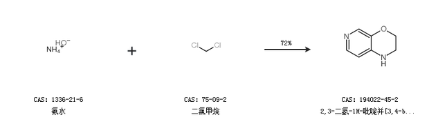 1.通过氨水和二氯甲烷合成2,3-二氢-1H-吡啶并[3,4-b][1,4]噁嗪,收率约72%;