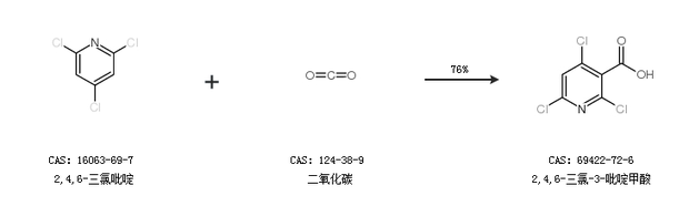 1.通过2,4,6-三氯吡啶和二氧化碳合成2,4,6-三氯-3-吡啶甲酸,收率约76%;