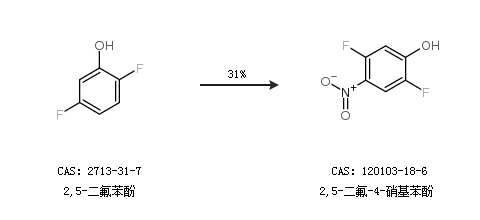 1.通过2,5-二氟苯酚合成2,5-二氟-4-硝基苯酚,收率约31%;