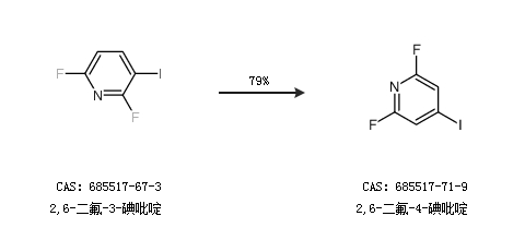 2.通过2,6-二氟-3-碘吡啶合成2,6-二氟-4-碘吡啶,收率约79%;