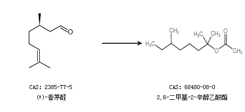 1.通过(+)-香茅醛合成2,6-二甲基-2-辛醇乙酸酯