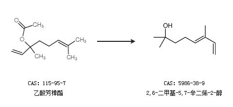 2.通过乙酸芳樟酯合成2,6-二甲基-5,7-辛二烯-2-醇