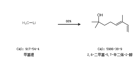 1.通过甲基锂合成2,6-二甲基-5,7-辛二烯-2-醇,收率约88%;