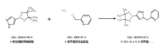 1.通过4-吡唑硼酸频哪醇酯和2-氯甲基吡啶盐酸盐合成2-[[4-(4,4,5,5-四甲基-1,3,2-二噁硼烷-2-基)-1H-吡唑-1-基]甲基]-吡啶