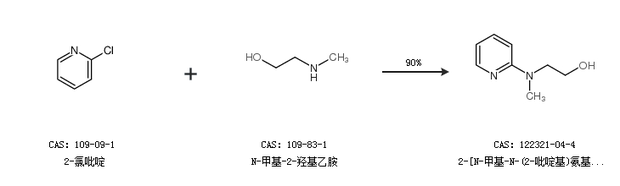 1.通过2-氯吡啶和N-甲基-2-羟基乙胺合成2-[N-甲基-N-(2-吡啶基)氨基]乙醇,收率约90%;