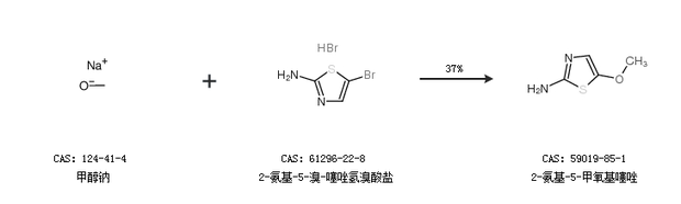 1.通过甲醇钠和2-氨基-5-溴-噻唑氢溴酸盐合成2-氨基-5-甲氧基噻唑,收率约37%;