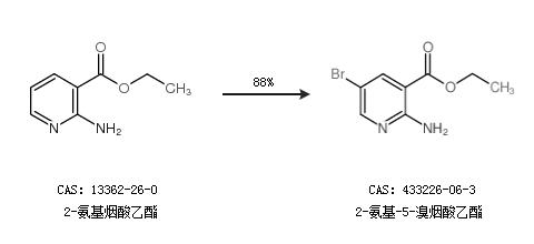 1.通过2-氨基烟酸乙酯合成2-氨基-5-溴烟酸乙酯,收率约88%;