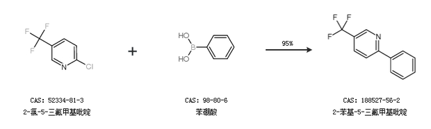 1.通过2-氯-5-三氟甲基吡啶和苯硼酸合成2-苯基-5-三氟甲基吡啶,收率约95%;