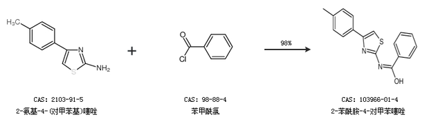 1.通过2-氨基-4-(对甲苯基)噻唑和苯甲酰氯合成2-苯酰胺-4-对甲苯噻唑,收率约98%;