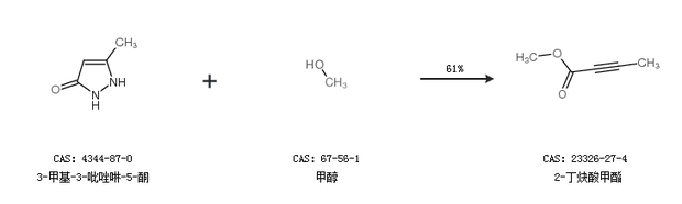 2.通过3-甲基-3-吡唑啉-5-酮和甲醇合成2-丁炔酸甲酯,收率约61%;