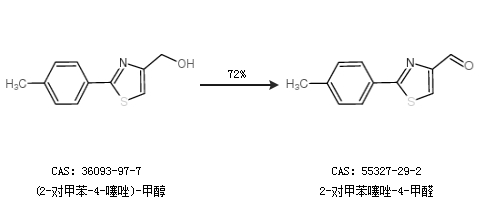 1.通过(2-对甲苯-4-噻唑)-甲醇合成2-对甲苯噻唑-4-甲醛,收率约72%;