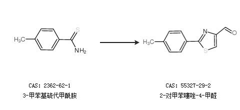2.通过3-甲苯基硫代甲酰胺合成2-对甲苯噻唑-4-甲醛