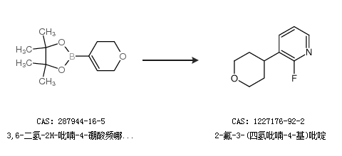 2.通过3,6-二氢-2H-吡喃-4-硼酸频哪醇酯合成2-氟-3-(四氢吡喃-4-基)吡啶