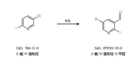 2.通过2-氟-5-溴吡啶合成2-氟-5-溴吡啶-3-甲醛,收率约50%;