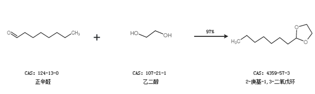 1.通过正辛醛和乙二醇合成2-庚基-1,3-二氧戊环,收率约97%;