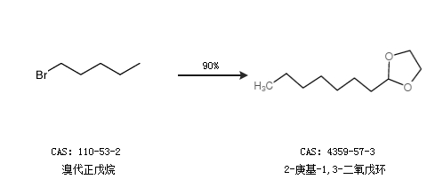 2.通过溴代正戊烷合成2-庚基-1,3-二氧戊环,收率约90%;