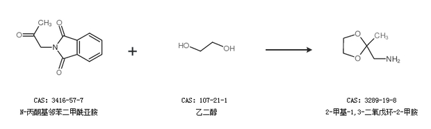 1.通过N-丙酮基邻苯二甲酰亚胺和乙二醇合成2-甲基-1,3-二氧戊环-2-甲胺