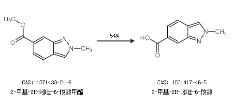 1.通过2-甲基-2H-吲唑-6-羧酸甲酯合成2-甲基-2H-吲唑-6-羧酸,收率约54%;