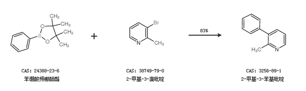 1.通过苯硼酸频哪醇酯和2-甲基-3-溴吡啶合成2-甲基-3-苯基吡啶,收率约83%;